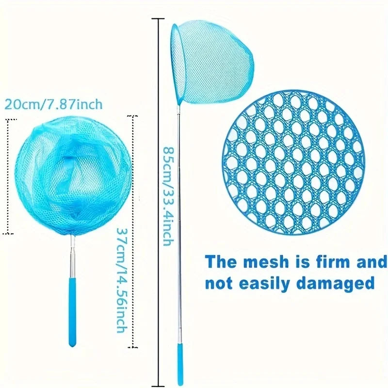 Ce filet pliable et coloré en acier inoxydable est parfait pour attraper petits poissons, insectes ou simplement jouer en plein air. Léger, compact et facile à utiliser, il accompagnera toutes vos balades au bord de l’eau ou dans le jardin.